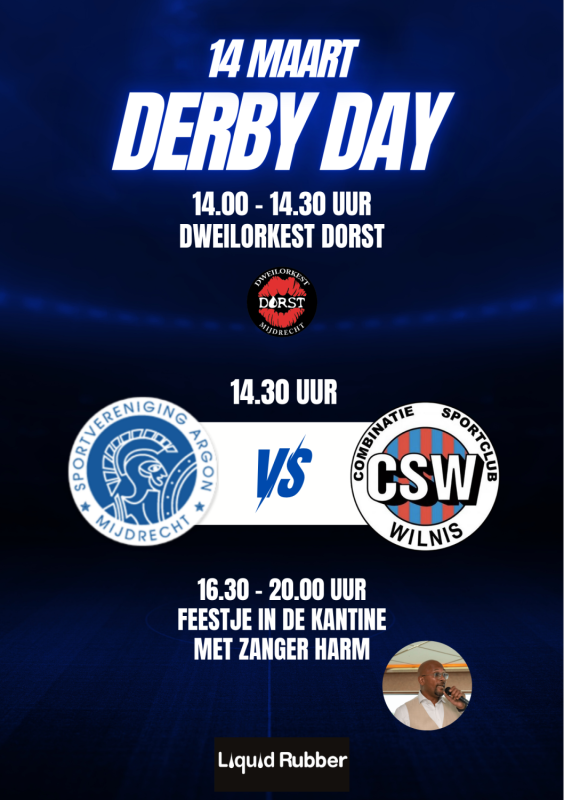 Zaterdag 14 maart staat bij Argon in het teken van de derby! Argon neemt het op tegen CSW in een wedstrijd waar altijd extra spanning en sfeer bij komt kijken. Dat wil je niet missen!