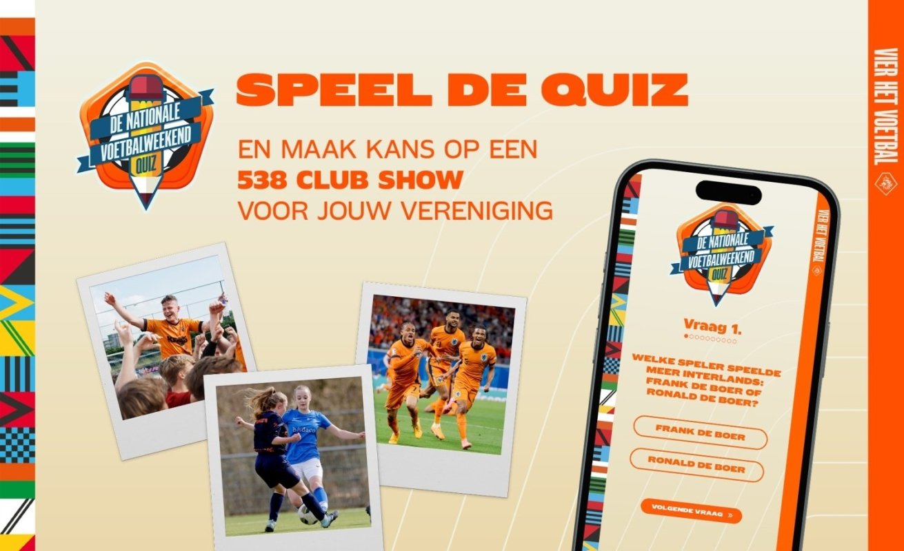 In aanloop naar Het Nationale Voetbalweekend (6 t/m 9 juni) kun je je voetbalkennis testen in De Nationale Voetbalweekend Quiz. Je kunt zelf deelnemen én als vereniging al je leden oproepen om de Quiz voor Argon te spelen, bij deze doen we dat dus! Hierdoor maakt Argon kans op een te gekke prijs: een 538 Clubshow bij jullie op de vereniging!