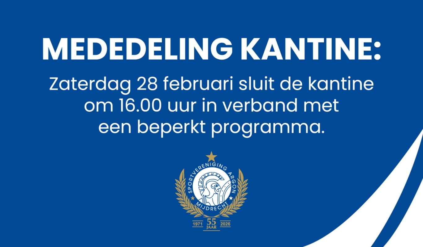Zaterdag 28 febrauri sluit de kantine om 16 uur in verband met een beperkt programma.