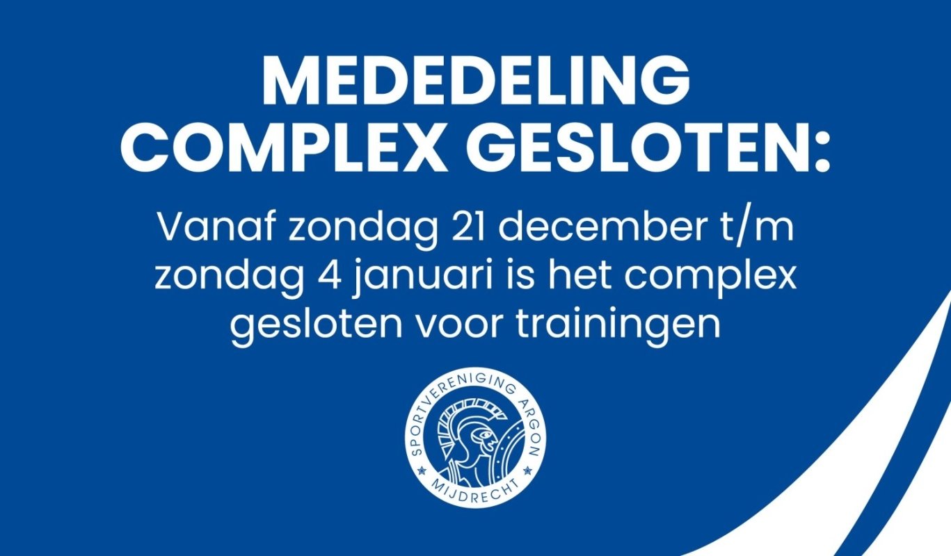 Vanaf zondag 21 december t/m zondag 4 januari is het complex gesloten voor trainingen.