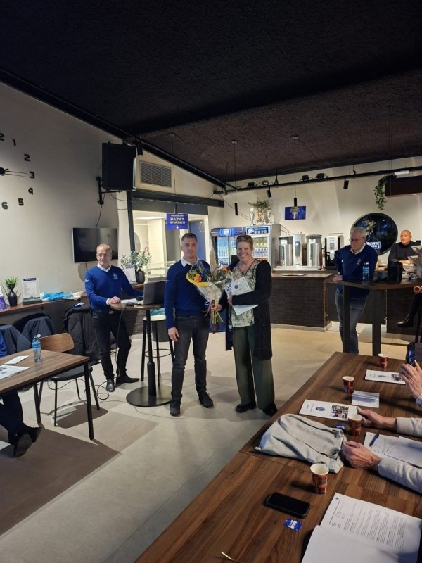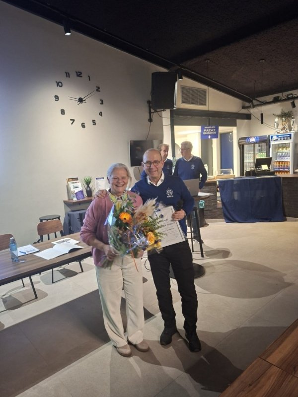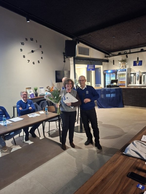 Penningmeester Fred Eindhoven sprak als eerste zijn grote waardering uit voor Annemiek Winters, die zich al 20 jaar met veel toewijding inzet voor de club. Jarenlang verzorgt Annemiek met succes de contributieadministratie, een taak die zij altijd nauwkeurig en betrouwbaar uitvoert.