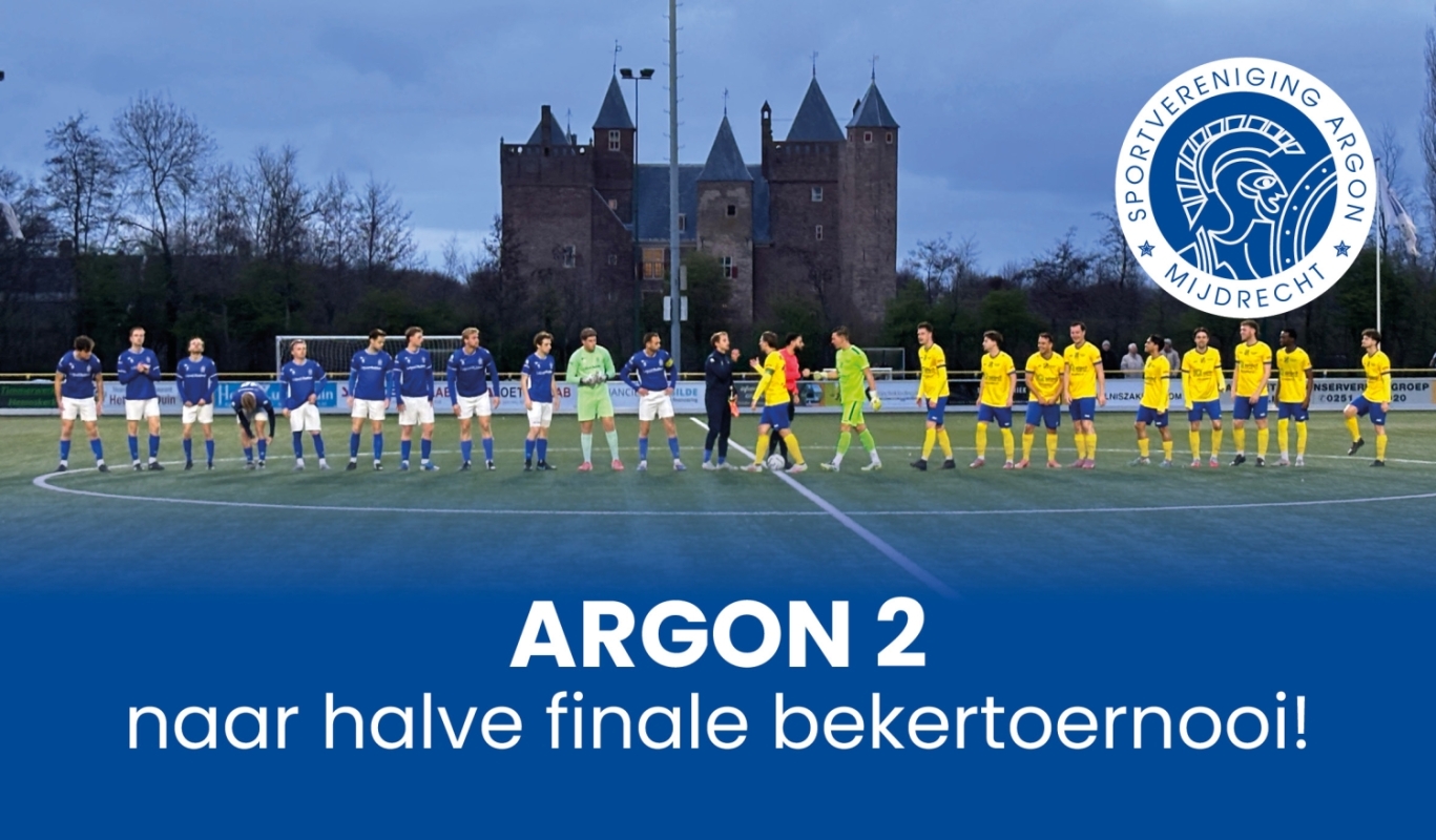 Afgelopen woensdag vond de loting plaats bij de KNVB. Daaruit kwam naar voren dat Argon 2 het in de halve finale opneemt tegen Velsen RKVV 2, uitkomend in de Hoofdklasse A (zondag). Het duel wordt gespeeld op zaterdag 2 mei om 17.00 uur, en zal plaatsvinden op het terrein van Velsen.